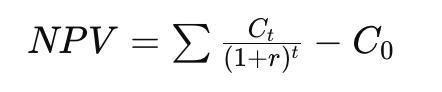 - (Ct) = Cash inflows in each period (e.g., revenue, cost savings)